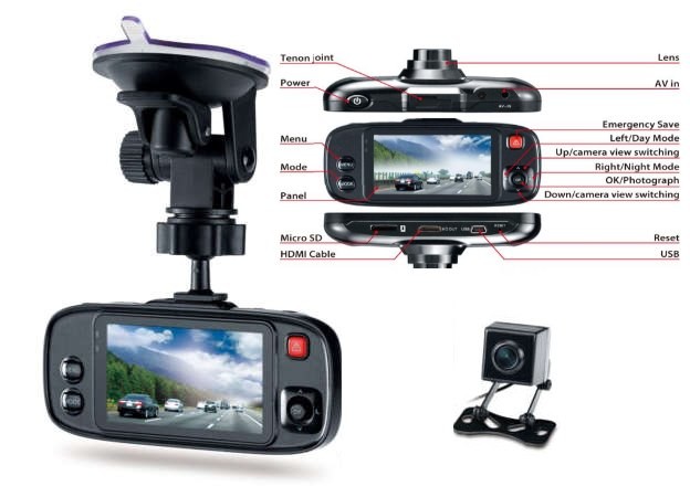 Stoga su oni proizveli sustav pod nazivom DVR-HD500D Dual Lens Vehicle Recorder, koji posjeduje glavnu prednju kameru s ekranom koja se postavlja na prednji vjetrobran, te snima slika događanja ispred automobila pod širokim kutem od 130 stupnjeva u 720p, dok na stražnji vjetrobran možete postaviti nešto manju kameru koja snima video u 480p, a slika iz oba izvora se simultano snima na microSDHC memorijsku karticu čim pokrenete vozilo.