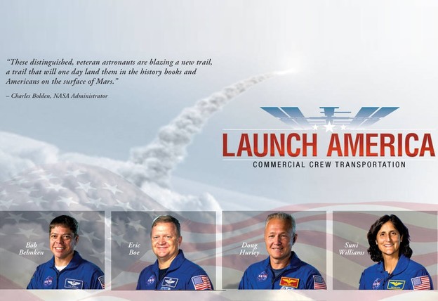 NASA je ovih dana odabrala četvero svojih veterana astronauta koji će blisko surađivati s privatnim tvrtkama u vezi programa prijevoza letjelica u svemir s ljudskim posadama, a to će biti astronauti i testni piloti Robert Behnken, Eric Boe, Douglas Hurley i Sunita Williams, koji će između ostaloga biti pratnja prvim svemirskim turistima koji će krenuti na ISS.